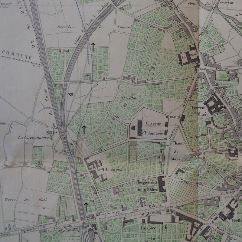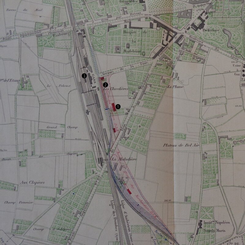 Comment les relier, alors que les voies P.L.M. les séparent ? La réponse déterminera l’origine de la voie de Chalon. Il faut aussi concilier les trafics "voyageurs" et "marchandises", ne pas encombrer davantage le passage à niveau sur la route n°83, trop souvent fermé [16].