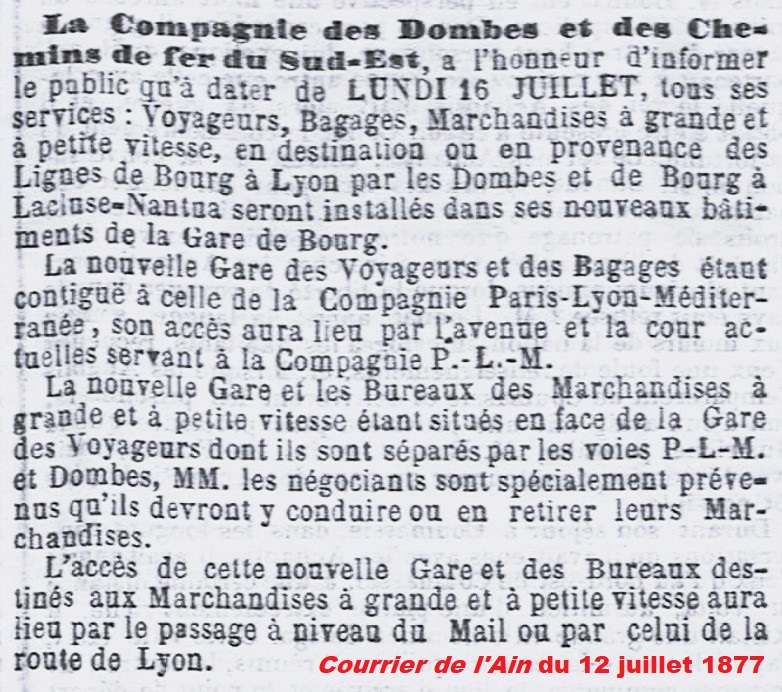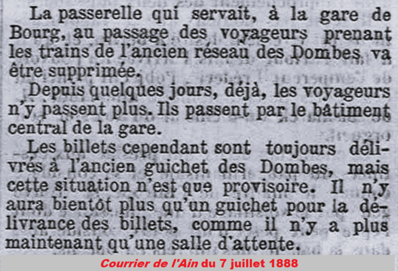 À Bourg, la gare est alors réorganisée et la passerelle métallique est démontée. Ensuite, le P.L.M. consolide les anciennes voies de la Compagnie D.S.E. pour permettre l’utilisation de locomotives plus puissantes.