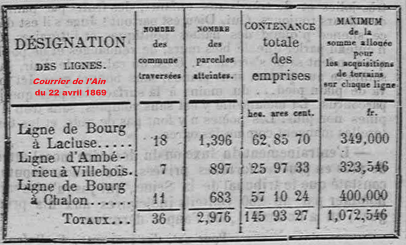 La polémique perdure et, en janvier 1872, le département de Saône-et-Loire n’a pas encore engagé l’acquisition des terrains pour la construction de la ligne. Et à l’automne 1874, les agriculteurs de l’Ain demandent s’ils peuvent ensemencer à nouveau les terrains qu’ils ont cédés.
