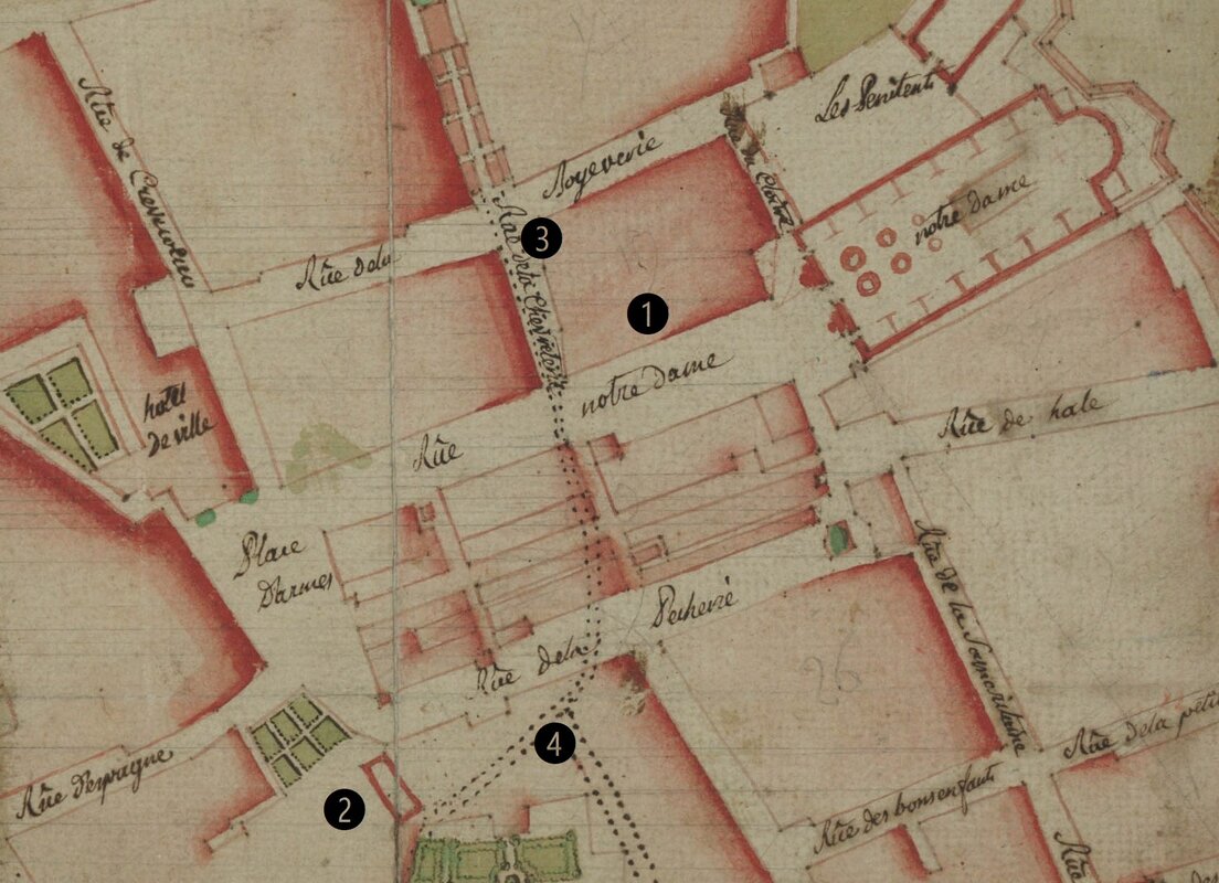 Face à l’augmentation des pensionnaires, au début du XVIIe siècle, les syndics achètent d’abord un bâtiment de l’autre côté de la rue de la Chèvrerie et les locaux sont reliés par une galerie, au-dessus de la rue. L’appellation hostel-Dieu apparaît alors en 1643. La situation reste précaire et une maison, avec jardin et dépendances, est acquise en 1652, sur la grande place de Crèvecœur ou de la Halle (aujourd’hui, place de l’Hôtel-de-Ville). Le transfert des malades est effectué.