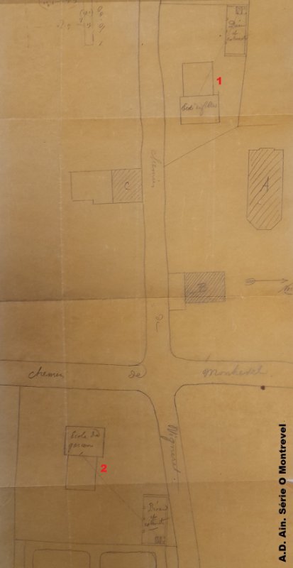Lors des débats pour l’école de Montmerle, des dissensions sont apparues entre le maire M. Chanel et son Conseil municipal. Son successeur, Jean-Baptiste Jacquet, nommé par un décret du 14 janvier 1970, reprend les dossiers en cours, dont la construction d’une « maison d’école dans la partie située en Bresse ». Le dossier est mené conjointement avec celui de la mairie et les divers plans, de l’architecte Darme, ont été approuvés lors de deux réunion du Conseil municipal, à l’automne 1869.