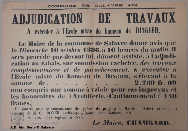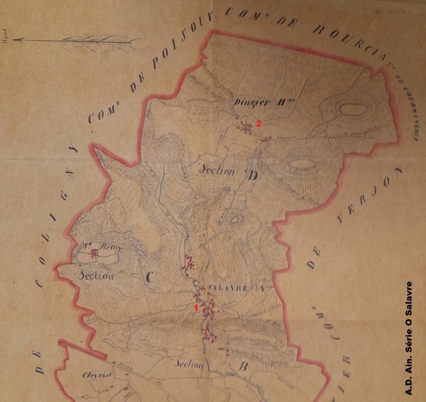 [17] Éléments issus des dossiers de la "Série O - Salavre" des A.D. Ain.