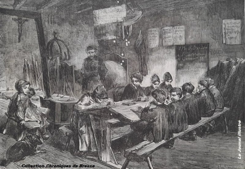 Les lois scolaires de la Troisième République ont fortement marqué la mémoire collective du pays et elles ont favorisé la création d’écoles mixtes jusque dans les hameaux. De telles écoles ont été ouvertes avant, comme l’indiquent les quelques exemples en Bresse, Revermont et dans des villages voisins. Leur création permet d’évoquer les mentalités villageoises de la seconde moitié du XIXe siècle.