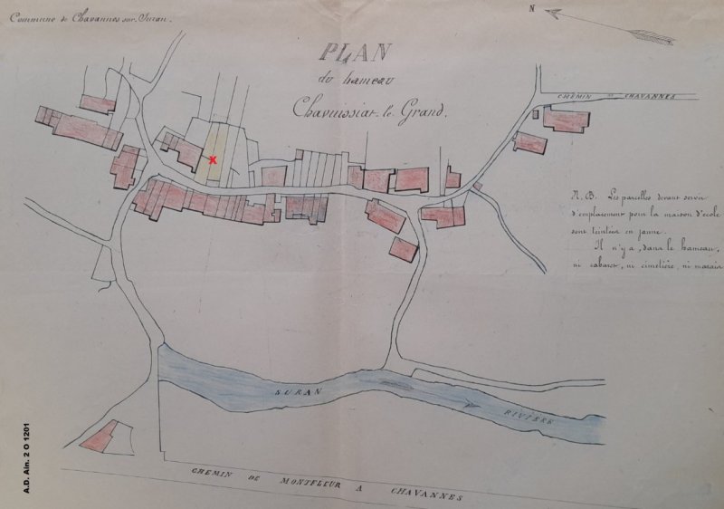À Chavannes-sur-Suran (canton de Treffort), les hameaux de Chavuissiat-le-Grand et de Chavuissiat-le-Petit demandent, en mars 1878, l’établissement d’une école mixte à Chavuissiat-le-Grand car, « lorsque les eaux [du Suran] grossissent , ce qui arrive encore assez souvent, les enfants se trouvent dans l’impossibilité d’aller à l’école, attendu que la route se trouve inondée par les eaux dans plusieurs endroits ». Le Conseil municipal approuve le projet les 12 mai et 23 juin 1878 et le ministère crée administrativement l’école le 3 août 1878. Les élus reviennent sur leur position car la commune s’est engagée dans la construction d’une mairie-école au chef-lieu. Le maire justifie sa volte-face le 25 août 1878 car, reprenant des propos du directeur de l’École normale de Bourg, M. Vincent, la multiplication des écoles « fait reculer le niveau de l’enseignement. Il faut, au contraire (...) réunir le plus grand nombre possible d’enfants, sous la même école, et y établir plusieurs classes. (...) Chaque classe ne se compose plus que d’une ou de deux divisions, le travail est simplifié, l’émulation entretenue et le maître consacre tout son temps aux mêmes élèves ». La préfecture refuse l’abandon de l’école de hameau et le maire, Alphée Rojat, démissionne le 7 novembre 1878. Le Conseil municipal renouvelle son opposition à plusieurs reprises mais le dossier, poursuivi entre engagements, rétractations, coercition de l’administration, se conclut par la construction d’une école mixte, réceptionnée en octobre 1884.
